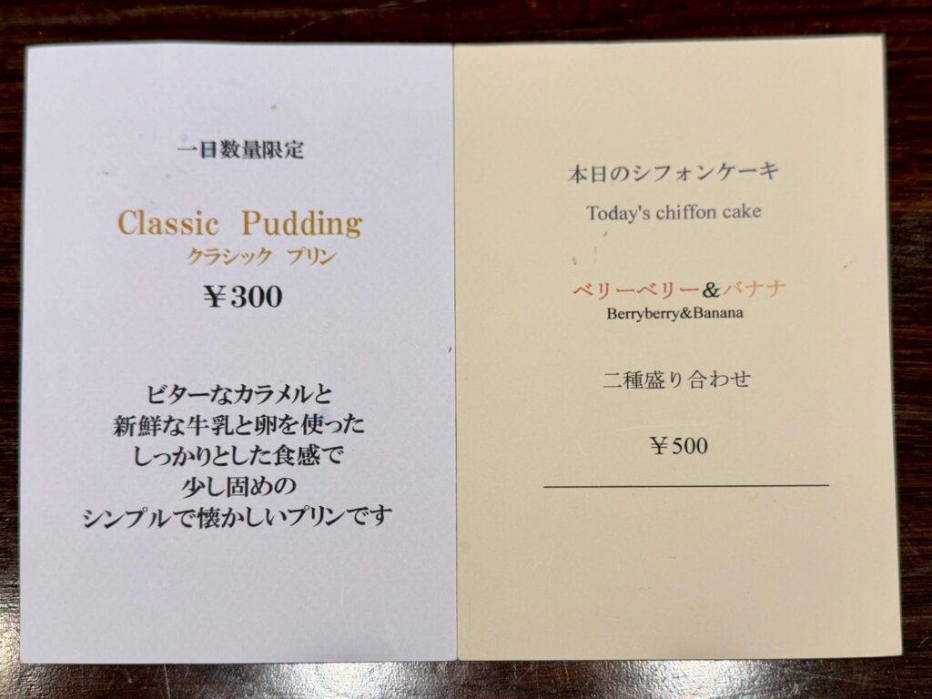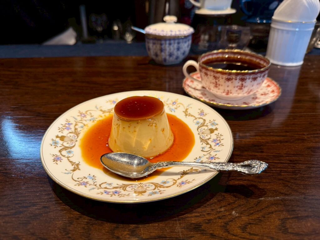 住宅街にある事を忘れるような店内でいただくコーヒーにプリン。そして親切な店主