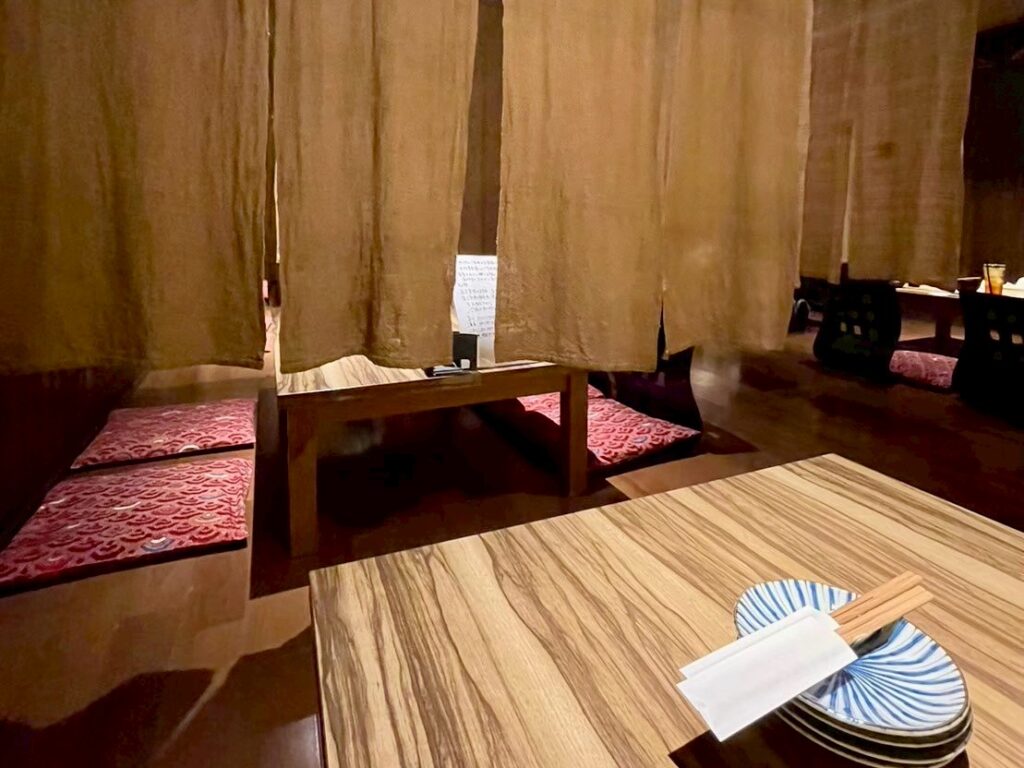 2階にあるお席で、お隣が見えにくいのれんがあり「半個室」という感じ