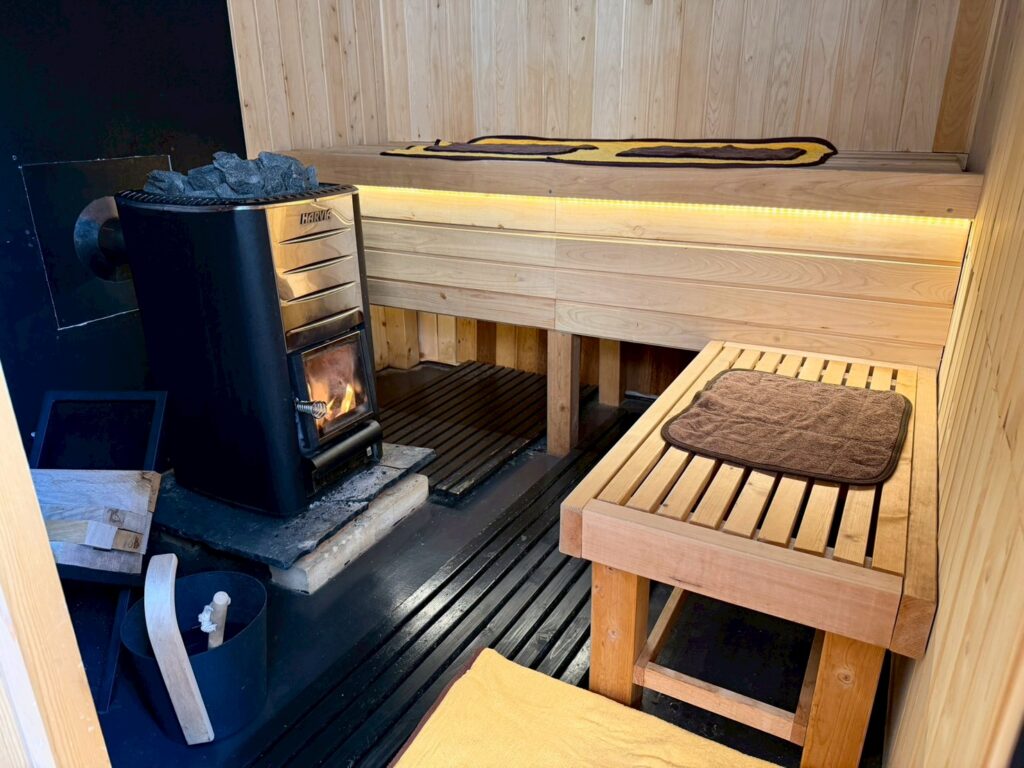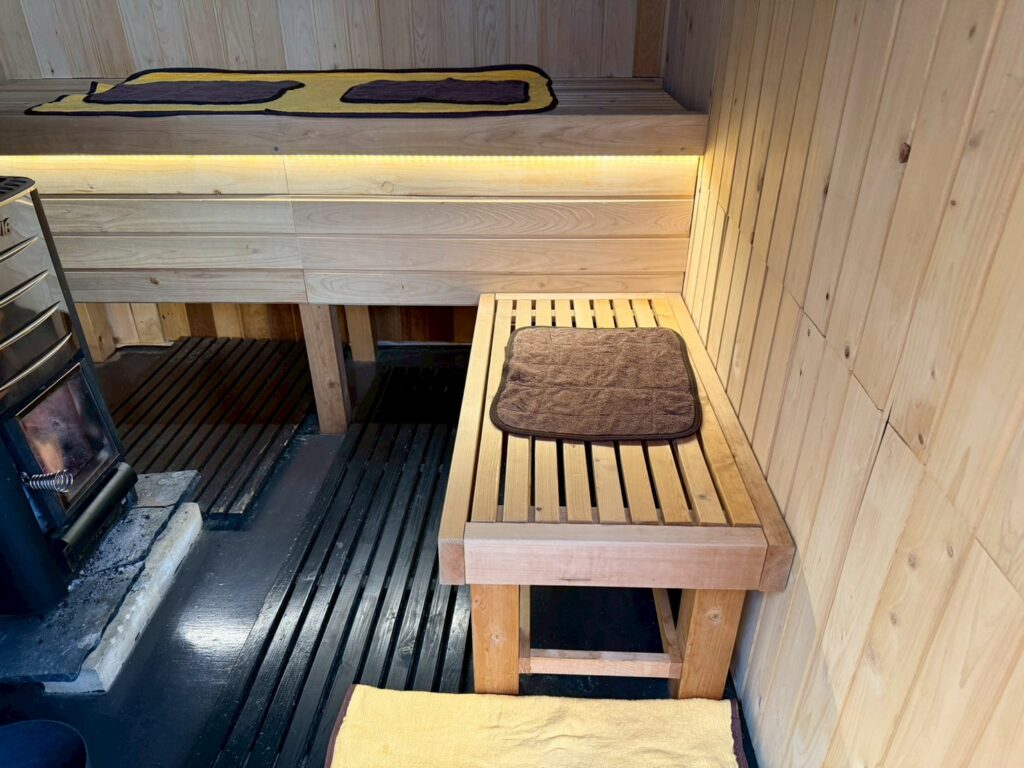 サウナで横に寝れるのもプライベートサウナの魅力ですよね~