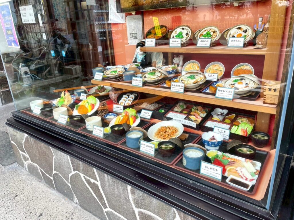 店内に入る前に料理のサンプルが沢山展示されています👀