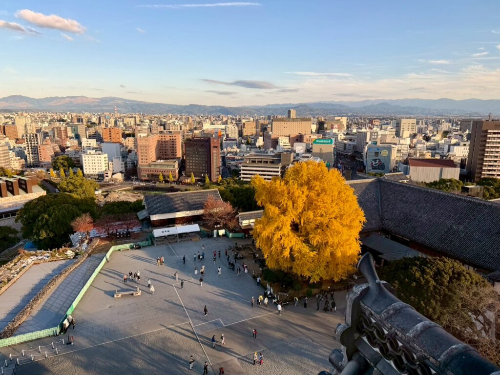 大きなイチョウと熊本城