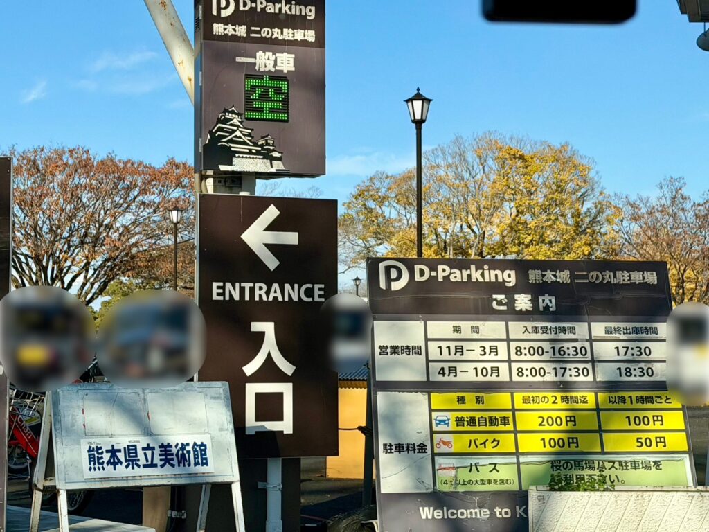 熊本城近くにいくつか駐車場がありますが