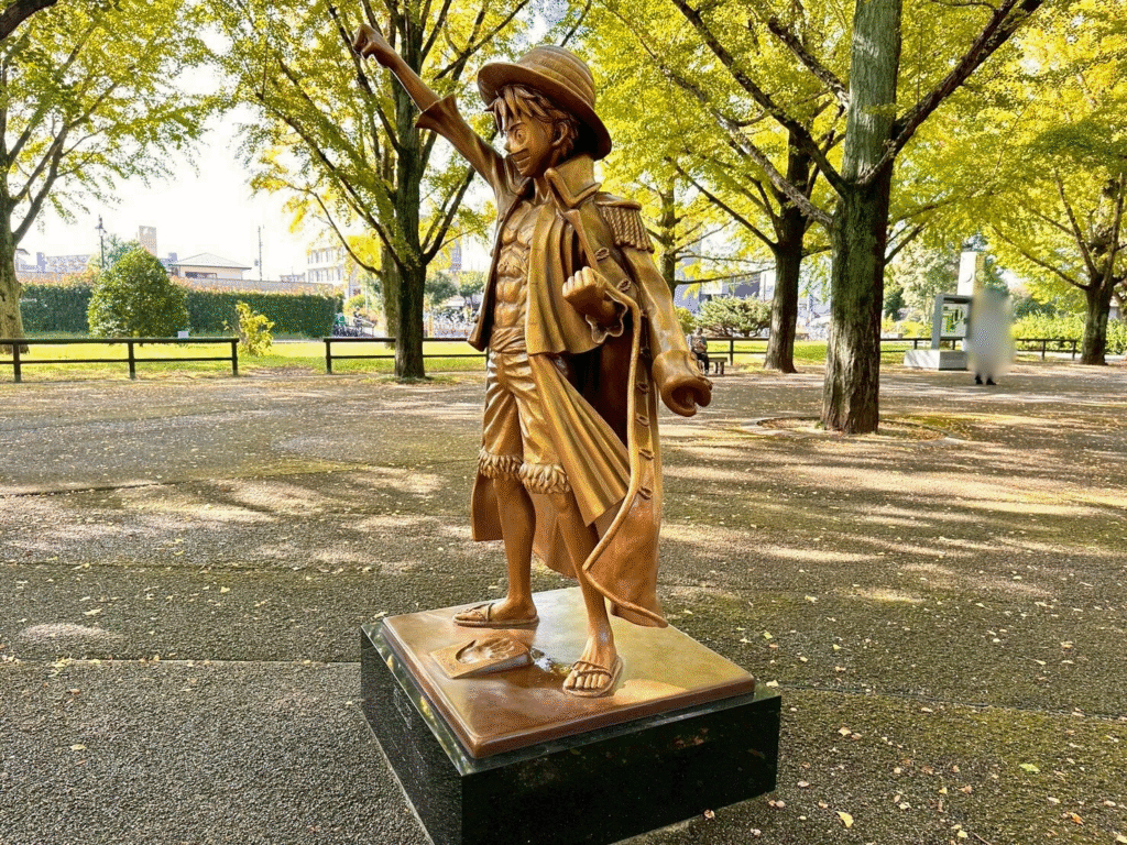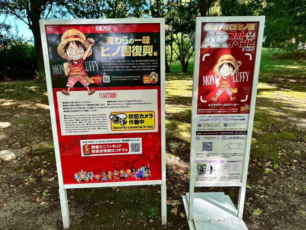 「ONE PIECE 熊本復興プロジェクト」で設置された麦わらの一味の船長ルフィ像がある場所と、アクセス方法