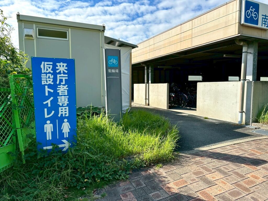 トイレは駐輪場の横に「仮設トイレ」が設置されていました