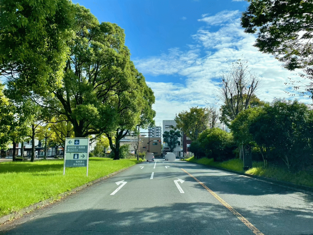 バスの場合最寄りバス停は「熊本県庁前」なので徒歩0分、目の前にあり便利です🚌