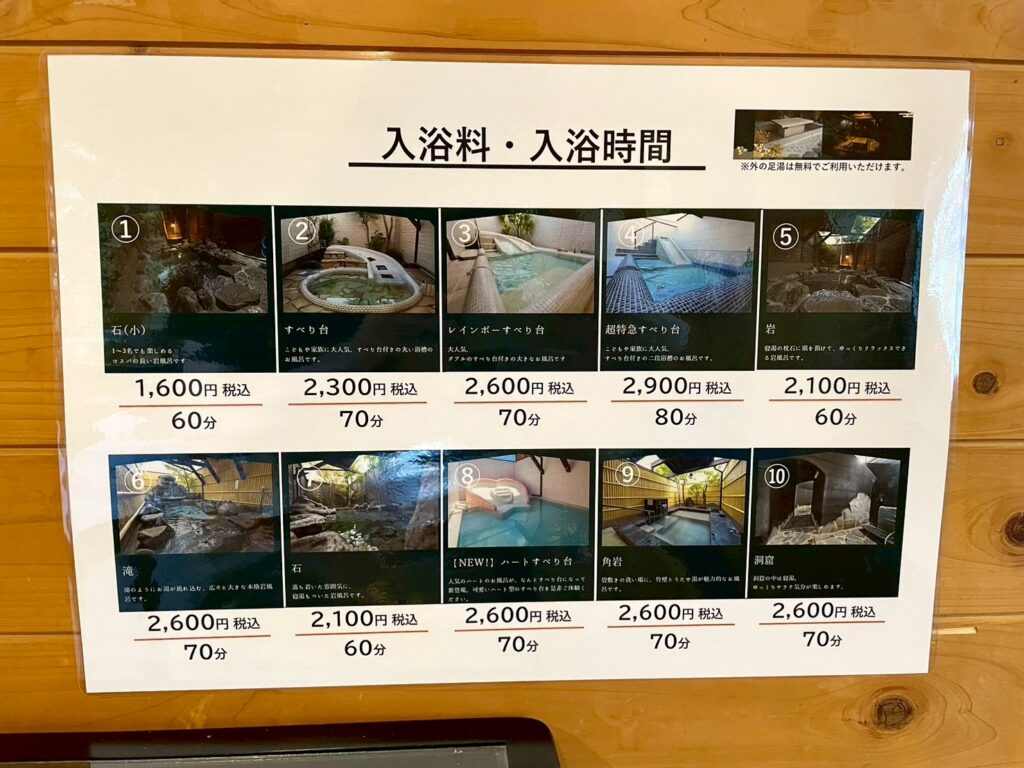 家族風呂の料金は1,600円~2,900円とお部屋によって異なるタイプで