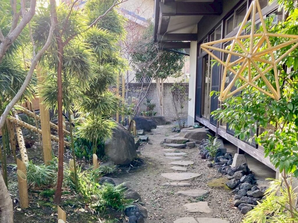 玄関横に見えるお庭には「竹明かり」