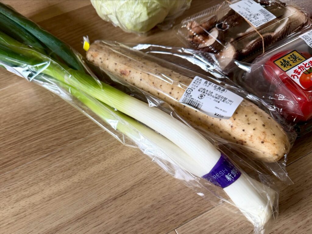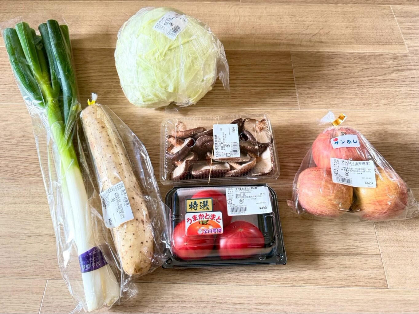 長ネギに、山芋に、キャベツ、しいたけ、トマト、りんご…