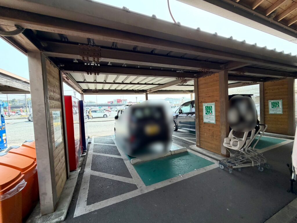 身障者駐車場も2台分、こちらは屋根付きで店舗のすぐ目の前に
